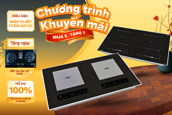 3. Chương Trình Khuyến Mãi 3: MUA 5 BẾP TỪ ĐÔI TẶNG 1 BẤP GAS ÂM CƠ